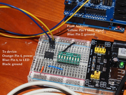 Here is a picture I took to remind myself how to connect the opto-isolators I\'ve bought: