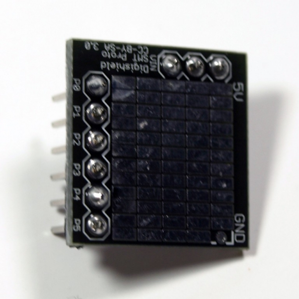 The Surface Mount Shield Kit breaks out the connections on the Digispark development board and provides a small surface mount soldering area for building custom circuits. The SMT pads on this board are 1.27×2.54 (50x100mil).