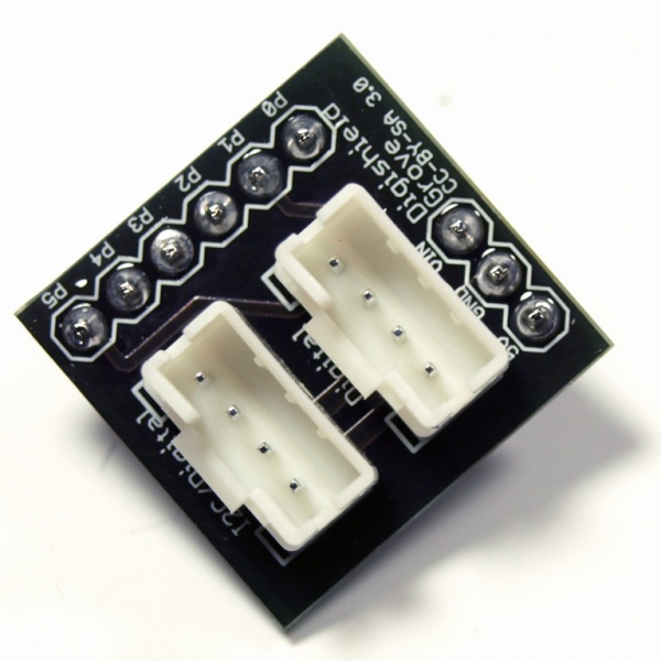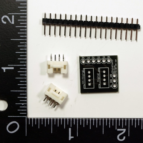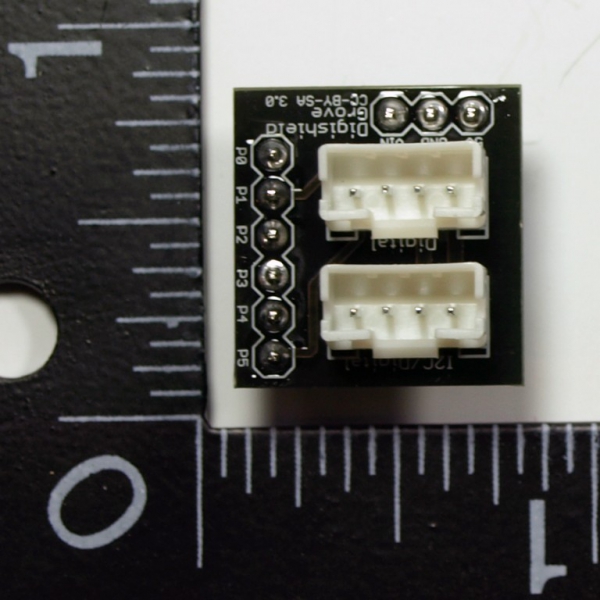 The Grove Shield Kit breaks out four of the six i/o connections on the Digispark development board into two Grove system compatible connectors. One connector is compatible with Grove I2C and Digital modules and the second is compatible with only Digital modules. They also may be compatible with some analog modules.