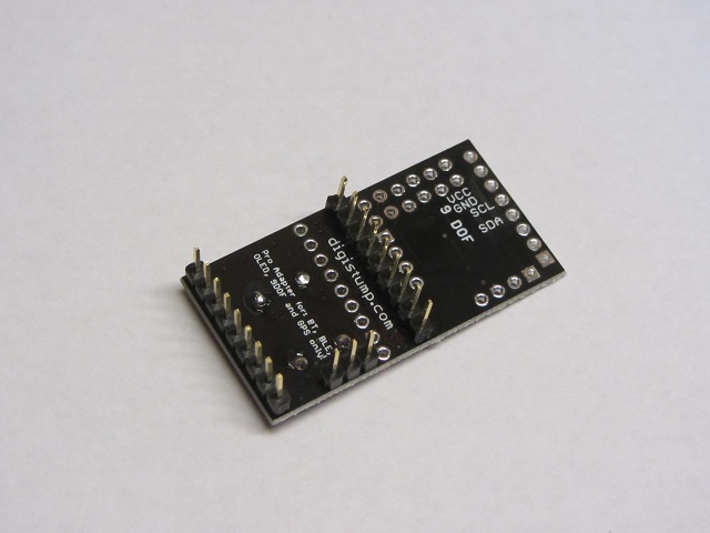 Cut two lengths of male headers each 9 pins long and one 3 pins long. Insert into corresponding positions (on the bottom of the board) and solder each pin.