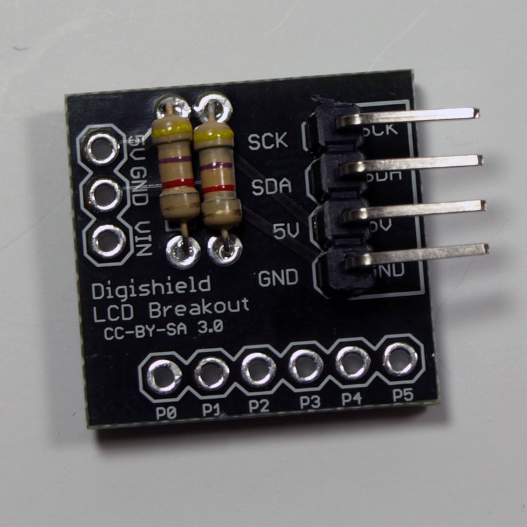 Cut a length of male headers 6 pins long and one 3 pins long. Insert into corresponding positions (on the bottom of the board) and solder each pin.